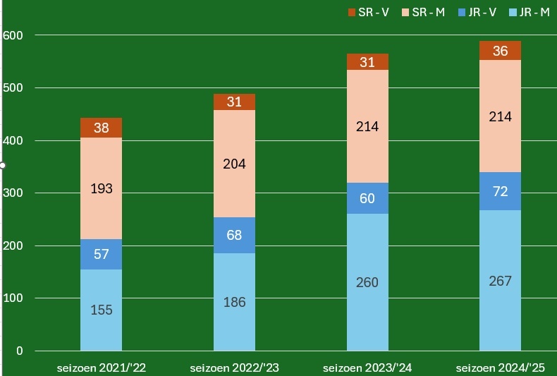 - Ledengroei: van 443 leden in 2021 naar 589 in 2025.