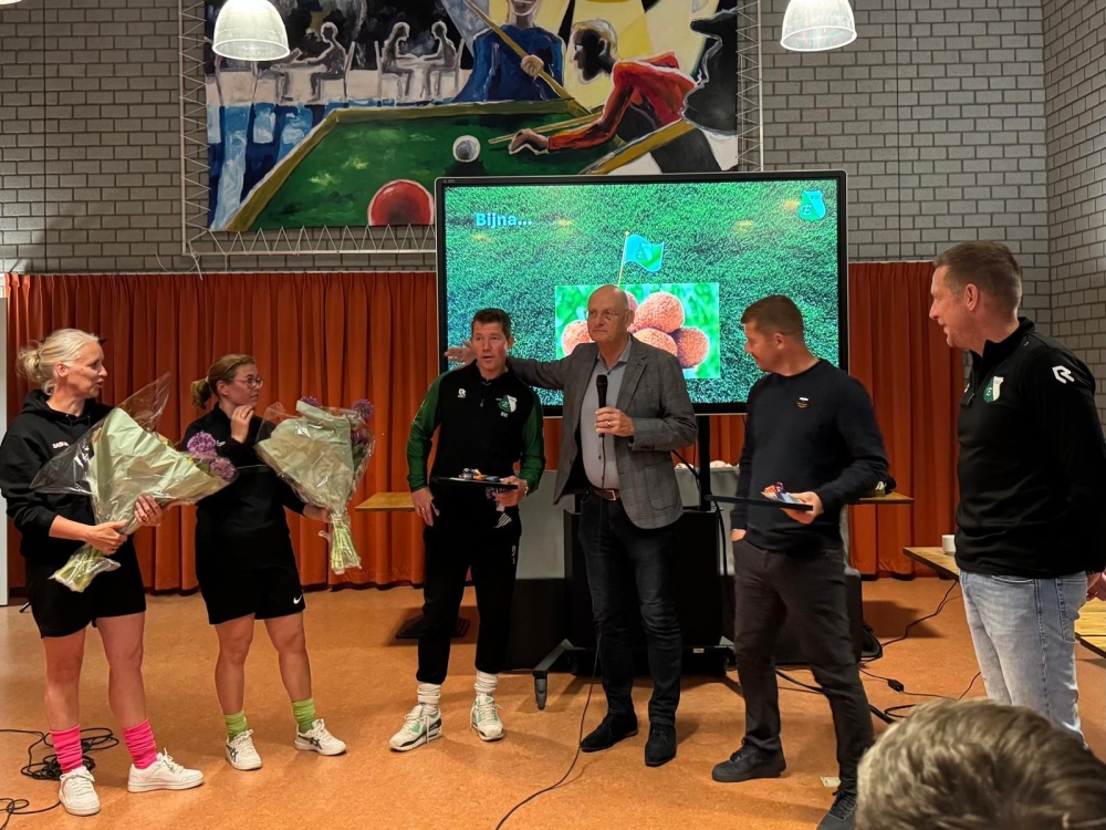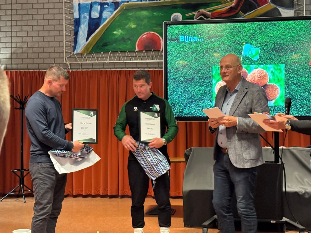 Bert Greven & Edwin Greven zijn gehuldigd door erelid en oud voorzitter Bert van Rotterdam voor hun geweldige inzet voor de club.